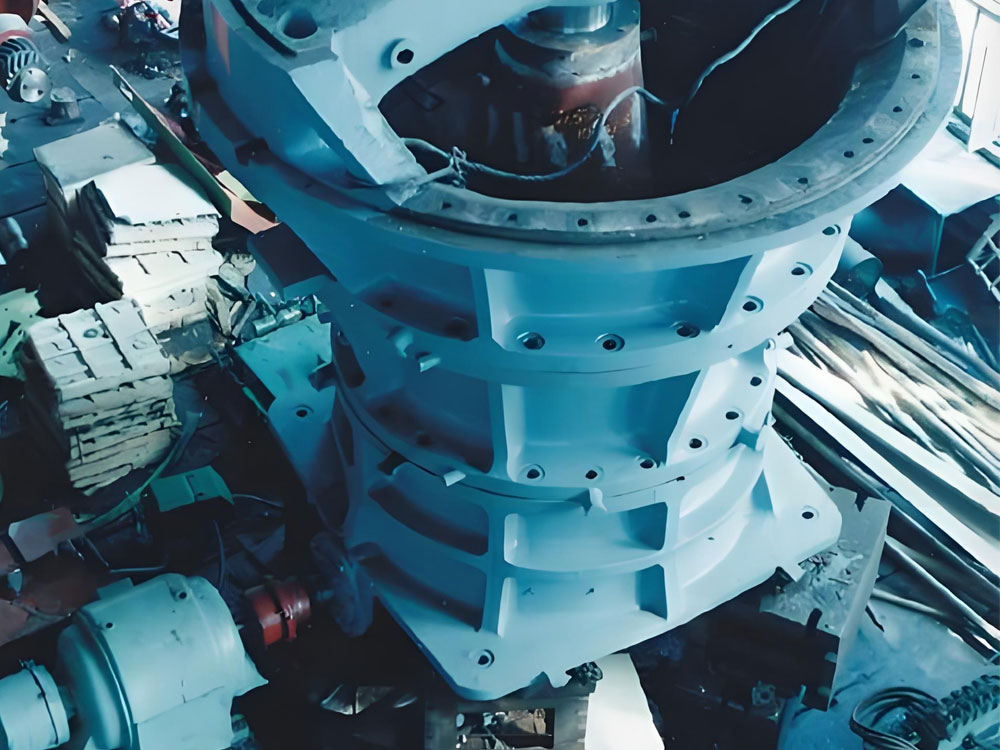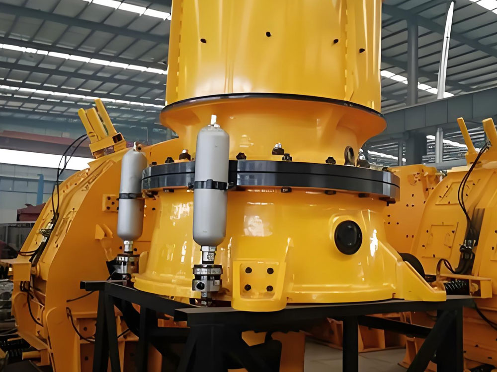 The cooperation between the moving cone and the fixed liner forms a progressive crushing chamber, and the material is crushed step by step from top to bottom to the target particle size. In this process, the upper end of the main shaft is stably supported by the crossbeam bushing, while the lower end is closely connected to the hydraulic drive system through the eccentric sleeve to ensure the stability of the power output and effectively avoid abnormal vibration of the main shaft.